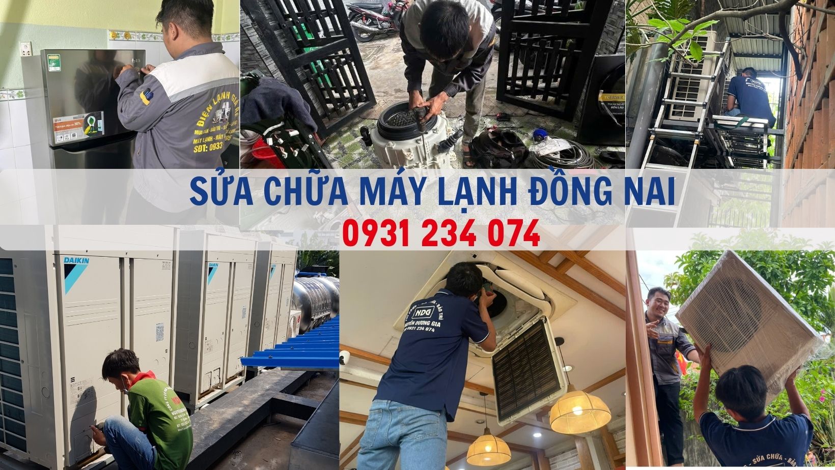Khắc phục sự cố khẩn cấp cho máy lạnh của gia đình bạn bằng cách gọi cho thợ sửa chữa máy lạnh Biên Hòa uy tín hàng đầu Điện lạnh Nguyễn Dương Gia qua đường dây nóng: 0931.234.074. Dịch vụ sửa chữa bảo trì máy lạnh tại công ty bao gồm các hạng mục vệ sinh máy lạnh, sửa chữa, bơm gas… Các trường hợp hư tụ điều hòa, board dàn nóng, dàn lạnh hư hỏng,… Đều là nguyên nhân cần gọi ngay thợ sửa chữa. Với chất lượng phục vụ UY TÍN – CHẤT LƯỢNG sẽ mang lại cho bạn dịch vụ sửa chữa máy lạnh uy tín nhất..